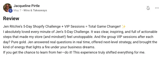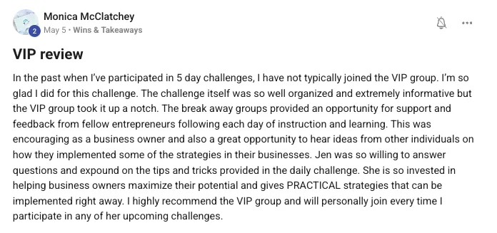 If you show up to all 5 VIP sessions, complete the action tasks, implement what you learn, and share your updates (live or via screenshot)…